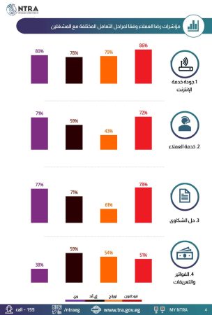أصدر الجهاز القومي لتنظيم الاتصالات تقرير الربع الثاني لعام 2025، والخاص باستطلاع رأي مستخدمي خدمات الهاتف المحمول وخدمات الإنترنت الثابت للوقوف على مدى رضاهم عن الخدمات المقدمة لهم من قبل المشغلين العاملين في السوق المصري، وذلك بالتعاون مع أحد بيوت الخبرة العالمية في مجال بحوث السوق.
