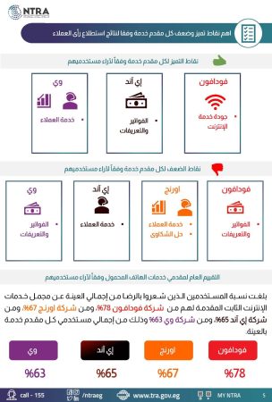 – جودة خدمة الإنترنت: حصلت شركة فودافون على نسبة 86% بمؤشر جودة خدمة الإنترنت، تليها شركة وي بنسبة 80%، وشركة اورنج بنسبة 79%، وشركة إي آند بنسبة 78%.