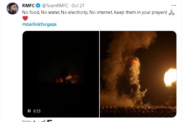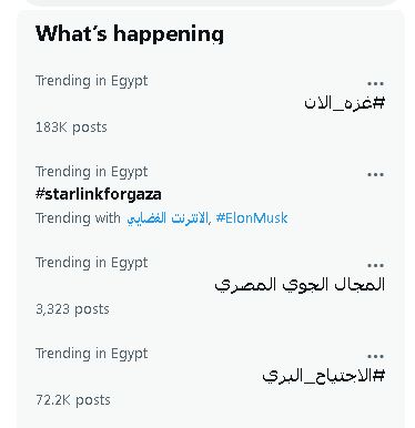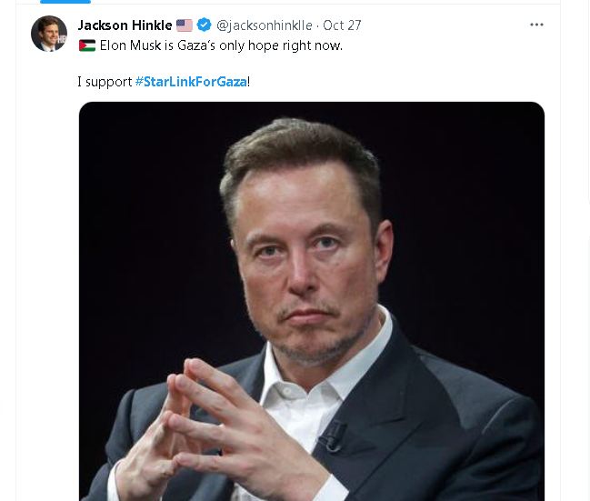 وطالب المستخدمون بالتغريد على حساب إيلون ماسك، والضغط عليه، مع نشر محتوى لرسالة باللغة الإنجليزية تدعوه إلى توفير الإنترنت الفضائي “ستارلينك” (Starlink) لقطاع غزة، بعد قطع إسرائيل لوسائل الاتصالات بالقطاع، وقد أصبح بالفعل هاشتاج (#starlinkforgaza) واحدا من أعلى الهاشتاج رواجا على مواقع التواصل الاجتماعي.